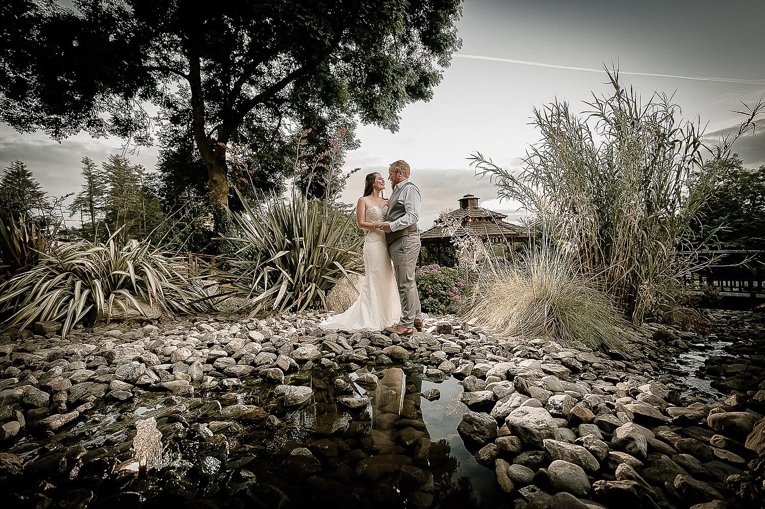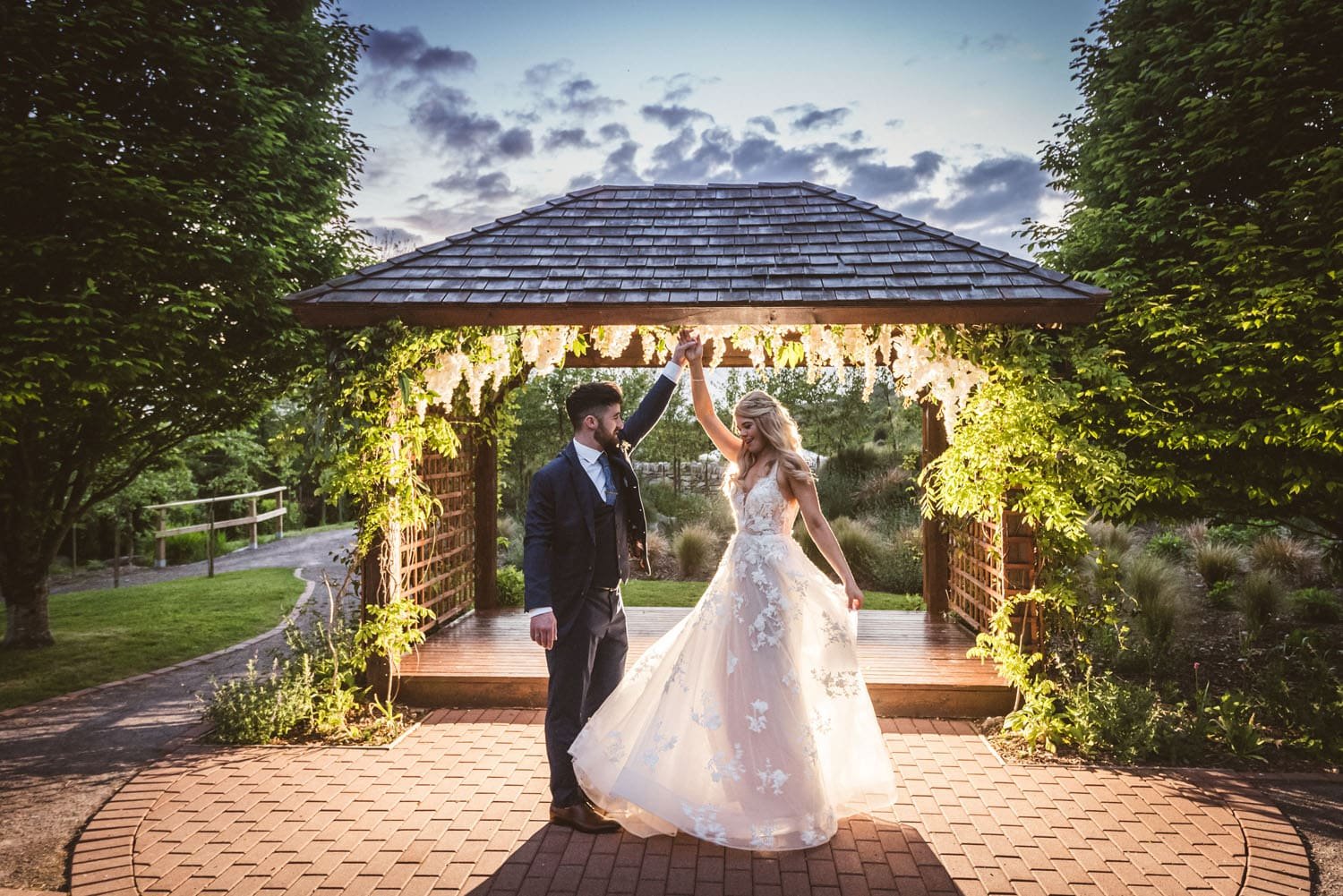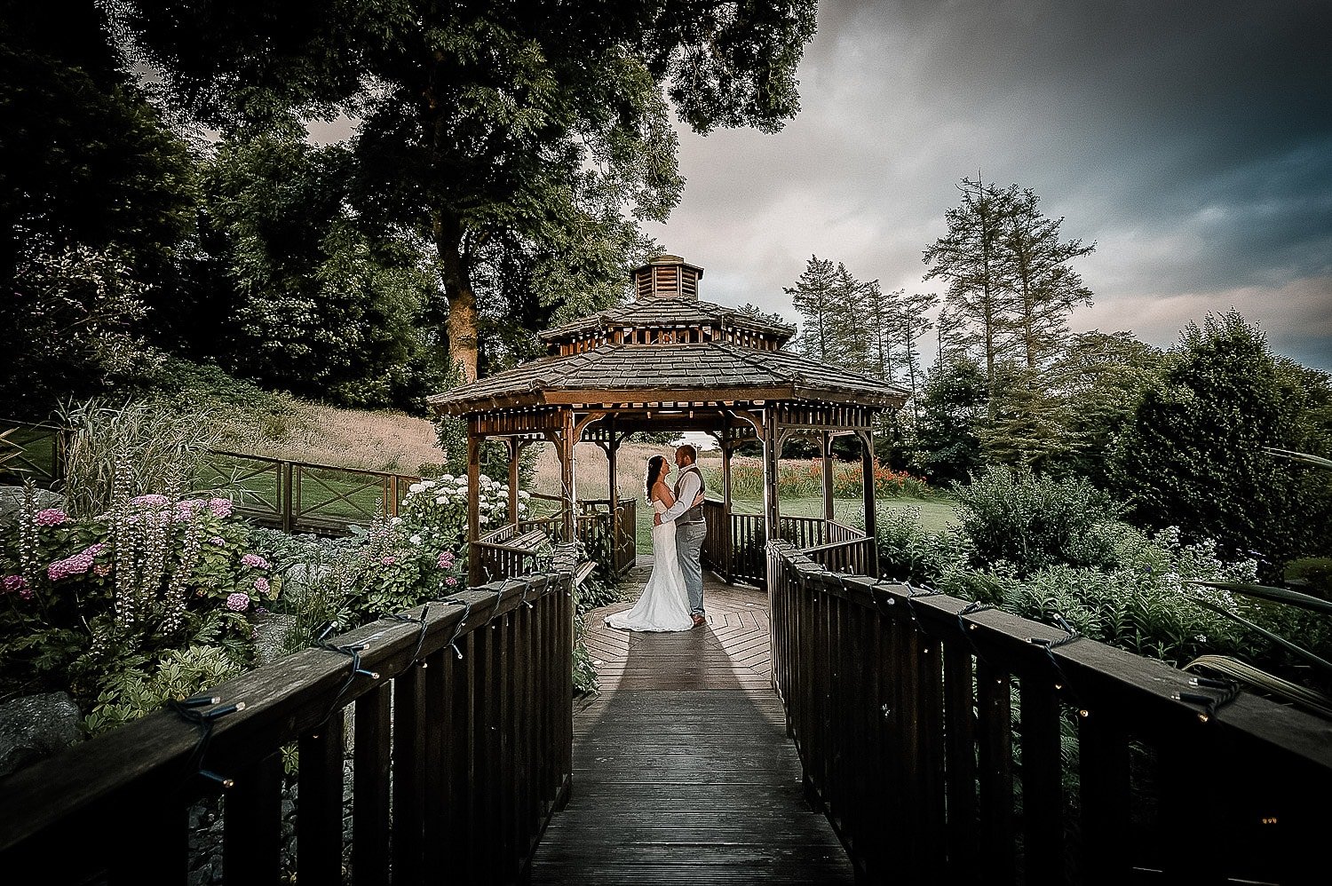The garden structures, like the bridge, the summer house and the moon gates make fantastic backdrops for sparkler shoots and romantic backlight photographs.