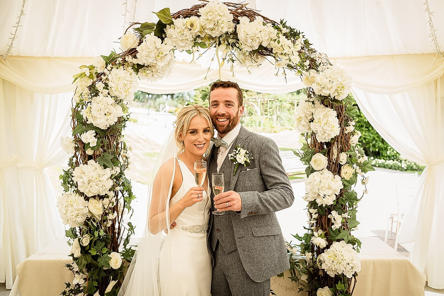 If you have a church wedding and arrive at the hotel afterwards, or if you have your ceremony at the hotel, your drinks reception is held in the marquee, which allows your guests to mingle and explore the gardens with a drink in their hand.