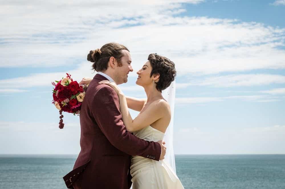 My preferred spot for wedding photographs is on the left hand side of the Headland as you are looking out to sea. The wind normally blows from left to right and you have lots of shelter when you are on the jetty.