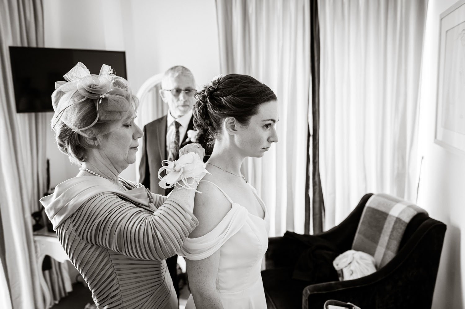 I like to arrive about 30 minutes before the ceremony is due to begin and start with some photographs of the groom and his party. Then I move on to where the bride is waiting and take some portraits of her with her family and bridesmaids.